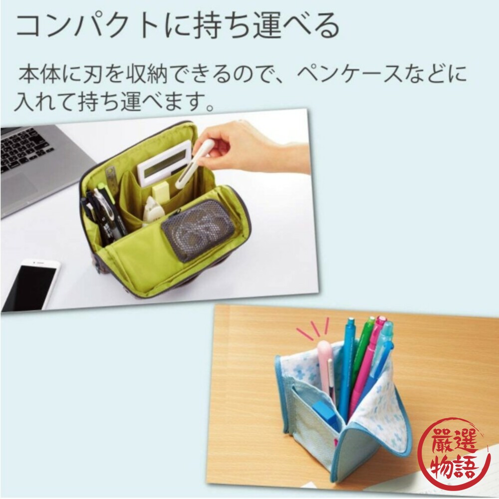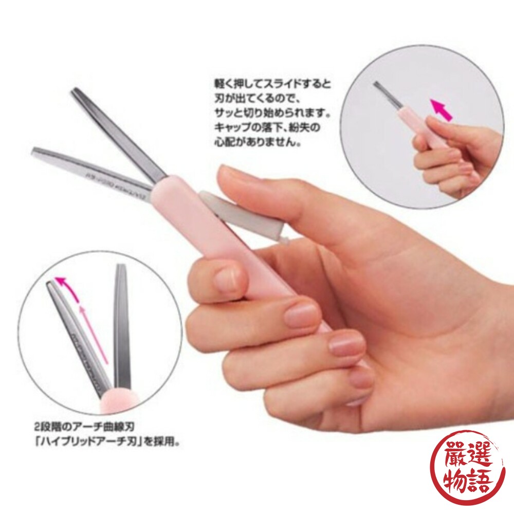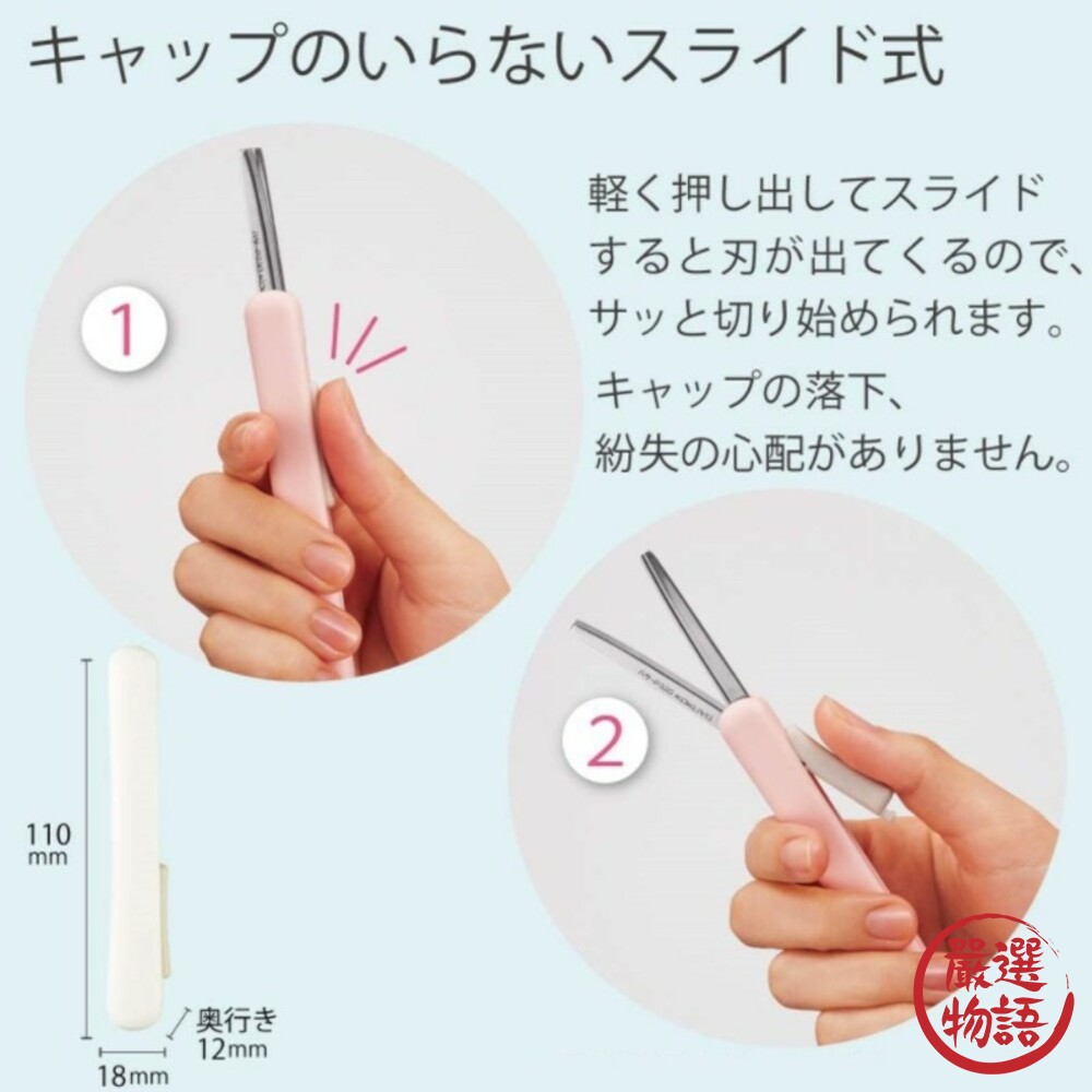 無蓋式攜帶型剪刀,往上一滑,就可以單手使用,不用擔心蓋子不見,