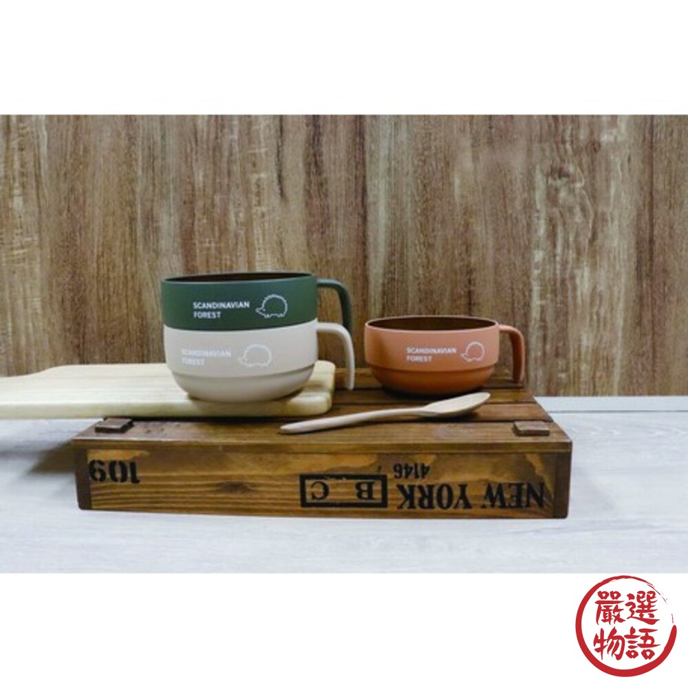 商品名稱:日本製Moz瑞典麋鹿 刺蝟圖案手把湯碗 SCANDINAVIAN FOREST露營餐碗 早餐 麥片碗