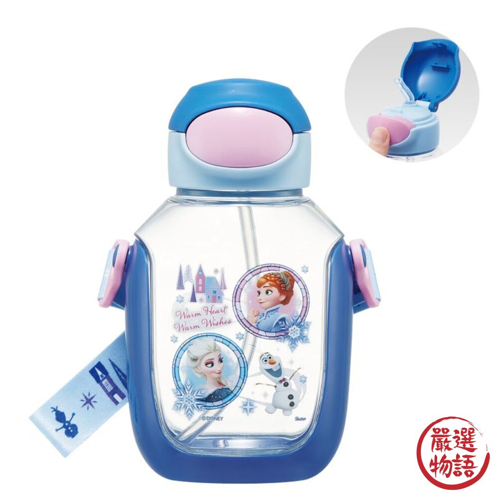 商品名稱:Skater 彈跳式吸管水壺 530ml | 兒童水壺 附背帶 姓名貼 冰雪奇緣 恐龍 水瓶
