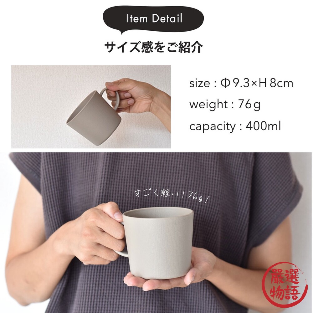 環保樹脂的材質,馬克杯也很輕!