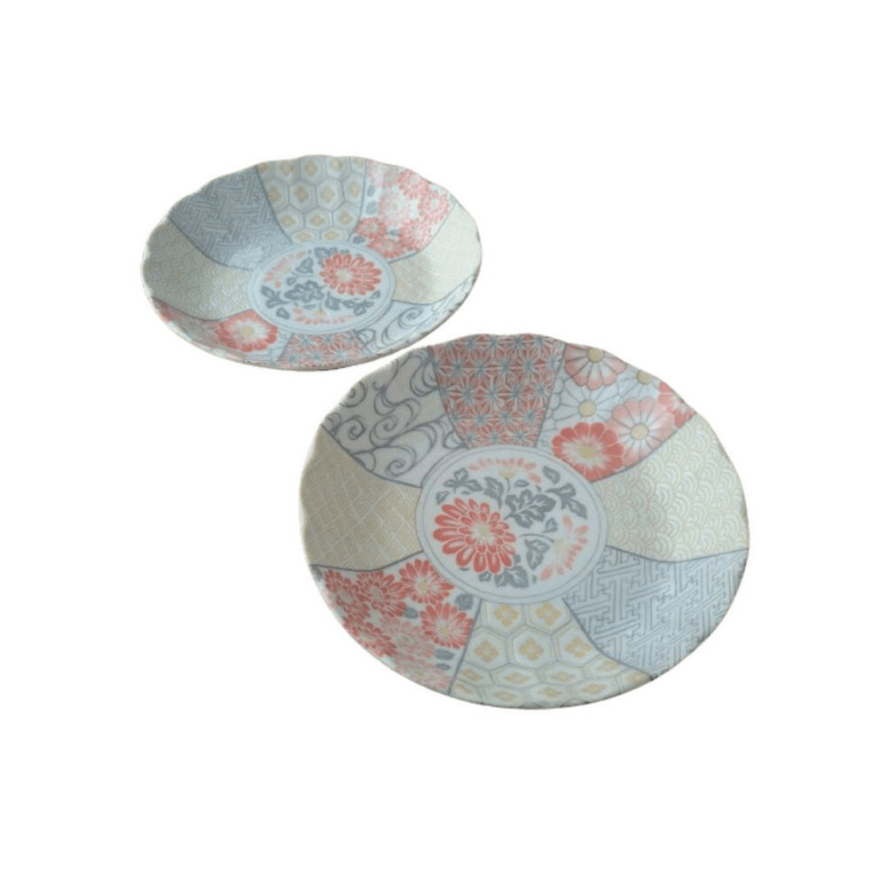 日本製美濃燒 花卉小盤 深盤