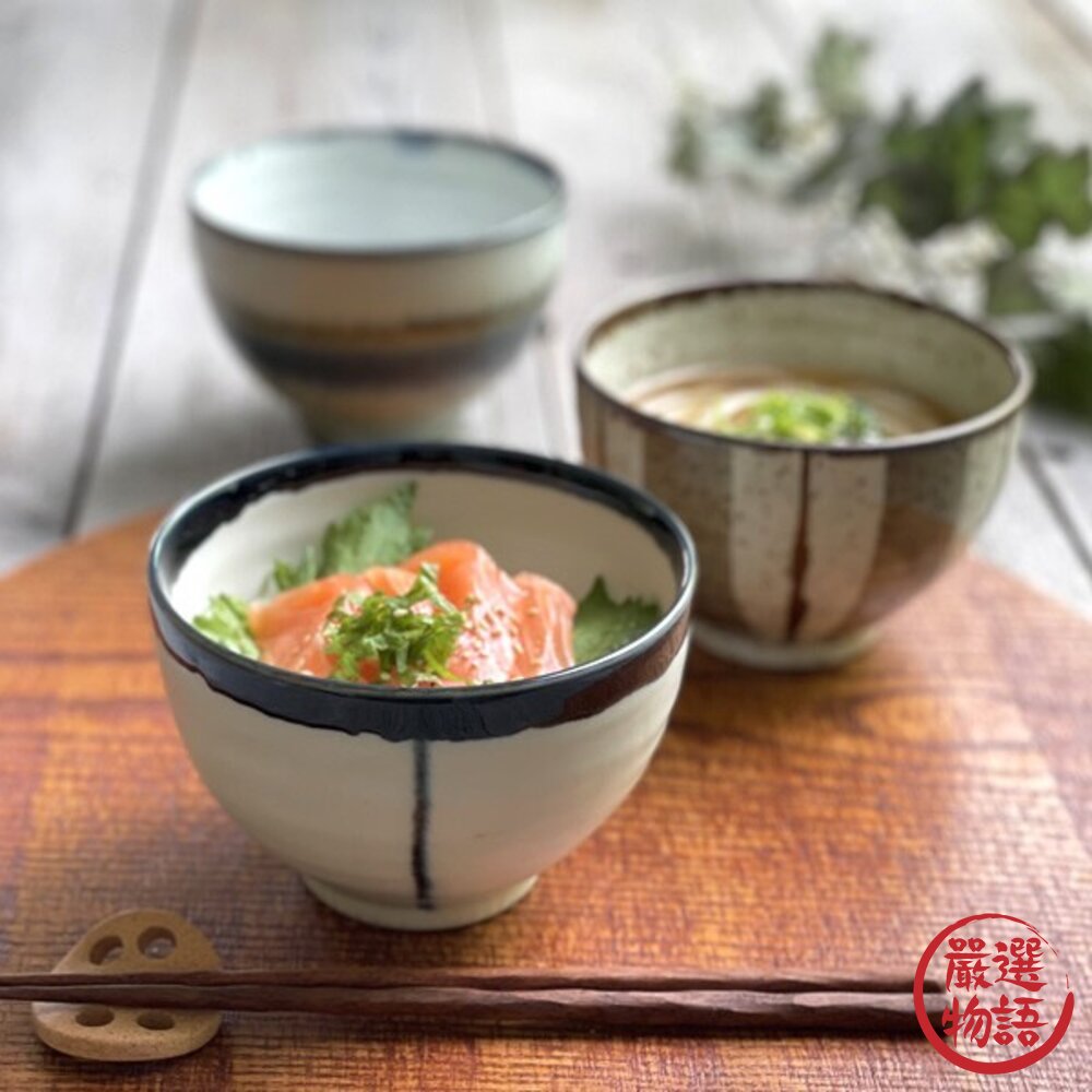 商品名稱:日本製美濃燒三柄陶瓷碗 日本進口 優雅線條設計精緻美觀 適合當丼飯湯碗