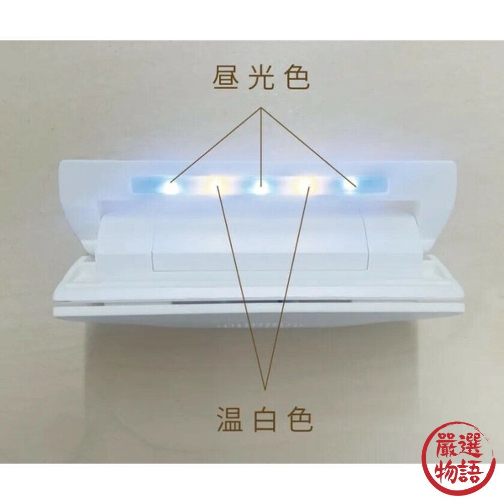雙色LED燈(白光/黃光)可切換,柔和不刺眼,能依照用途調整照明角度