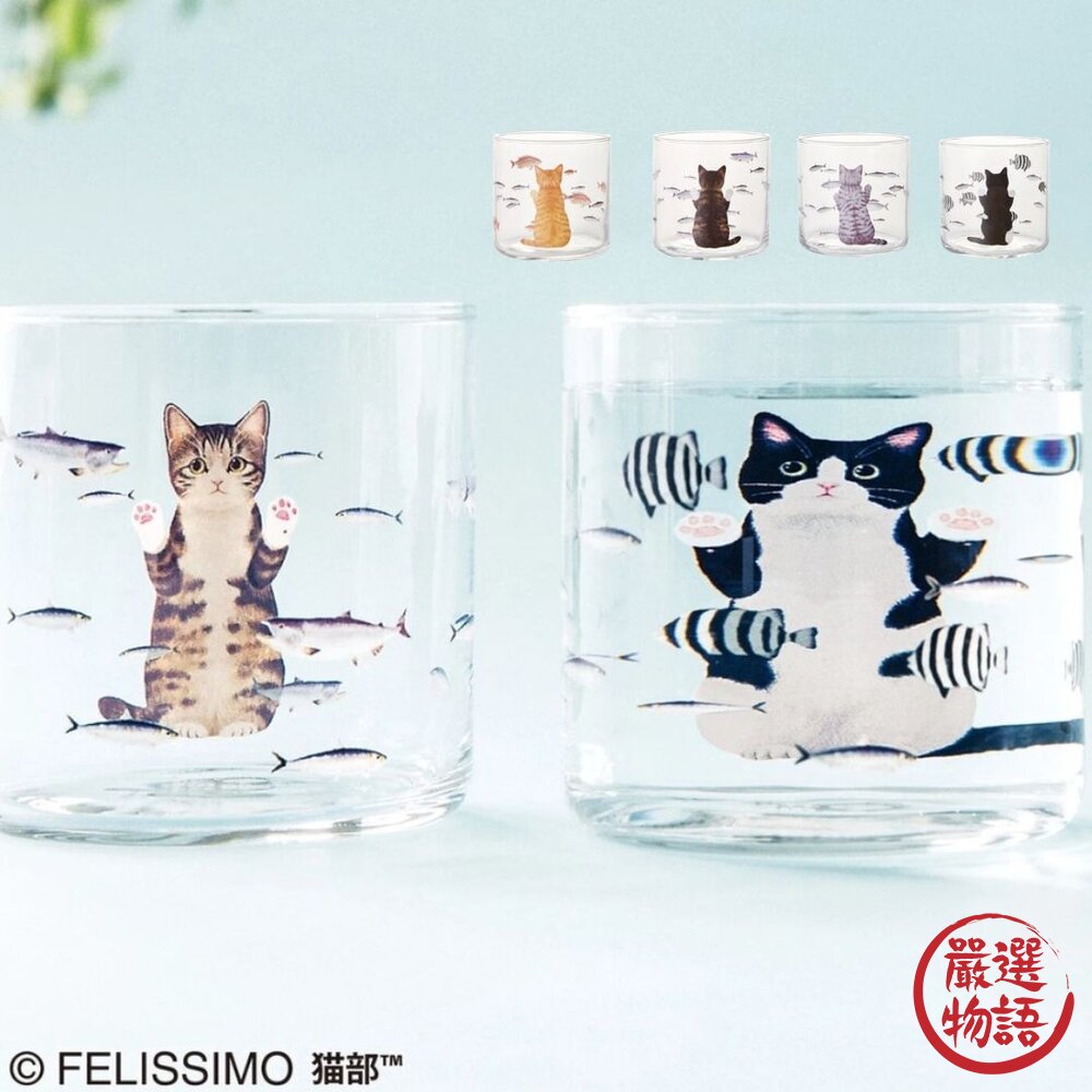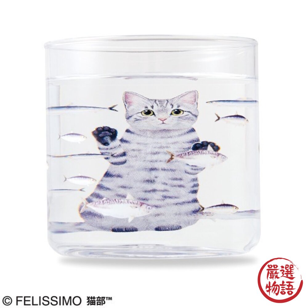 商品名稱:日本 杯子 貓咪水族館 貓部 Felissimo 加水貓咪胖三倍|玻璃杯 貓咪杯子 水杯 貓奴必備 日本進口