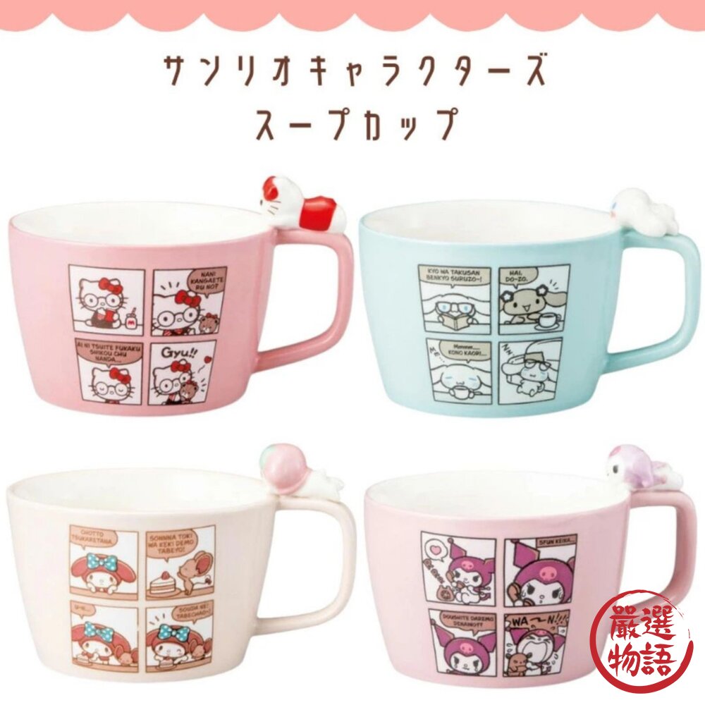 商品名稱:日本三麗鷗 四格漫畫馬克杯 300ml | Sanrio 杯緣子 陶瓷馬克杯 大耳狗 美樂蒂 kitty