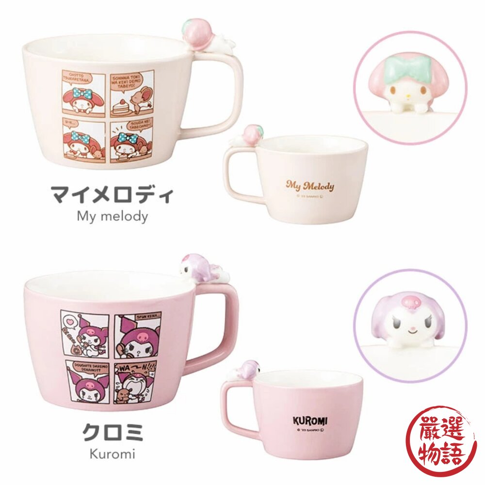 日本Sanrio三麗鷗杯緣子陶瓷馬克杯(300ml四格漫畫款),官方授權精選My Melody(美樂蒂)、大耳狗、Hello Kitty三大經典角色,四格趣味圖案粉嫩立體,溫潤高瓷觸感瞬間療癒身心,讓辦公桌或廚房充滿日系kawaii氛圍。