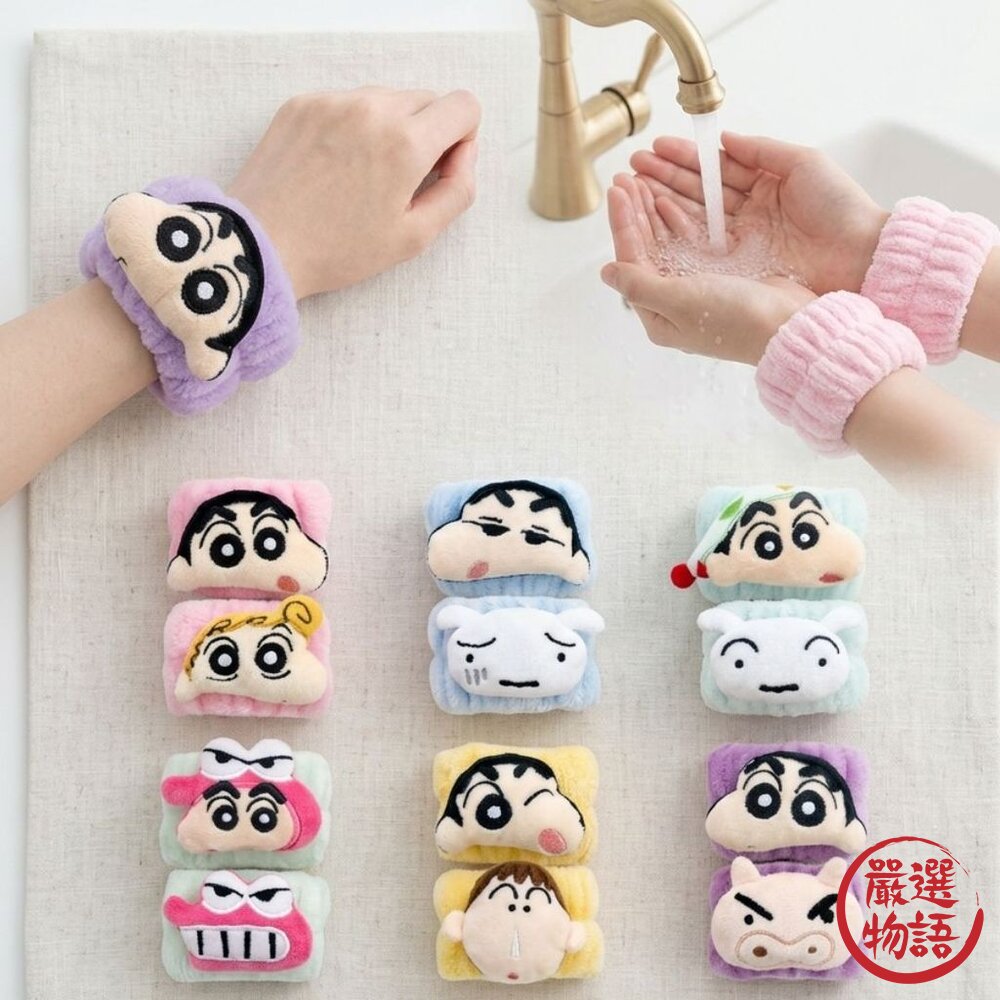 商品名稱:超可愛蠟筆小新洗臉神器 細絨柔軟吸水手腕帶 | 洗臉不滴水 居家旅行必備 造型防濕腕帶 可愛必收 日本進口