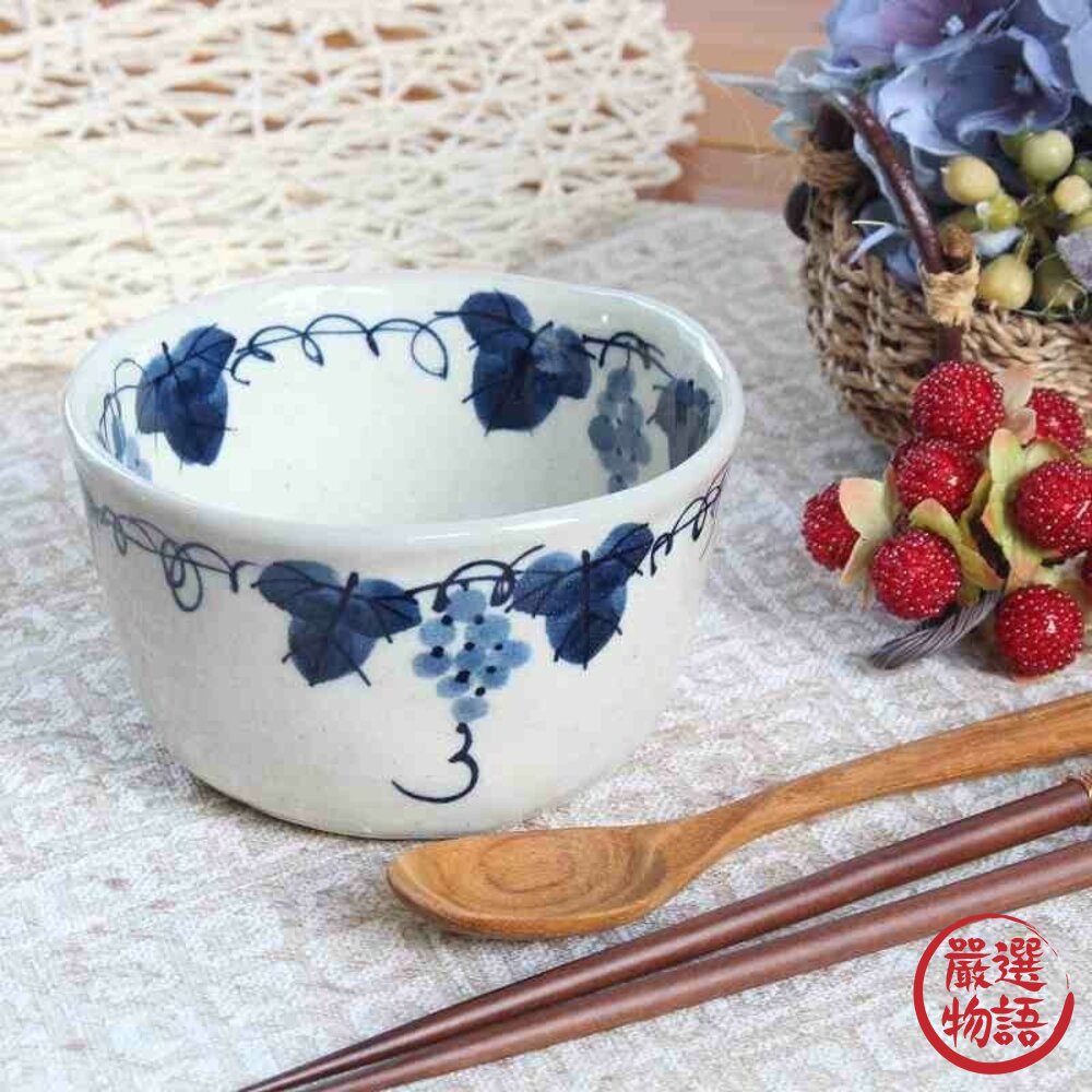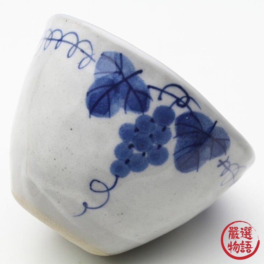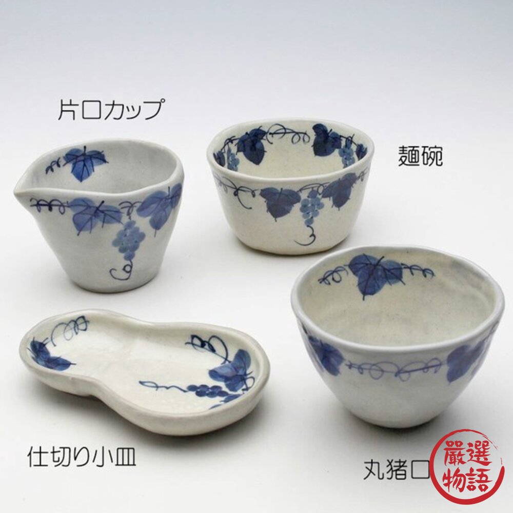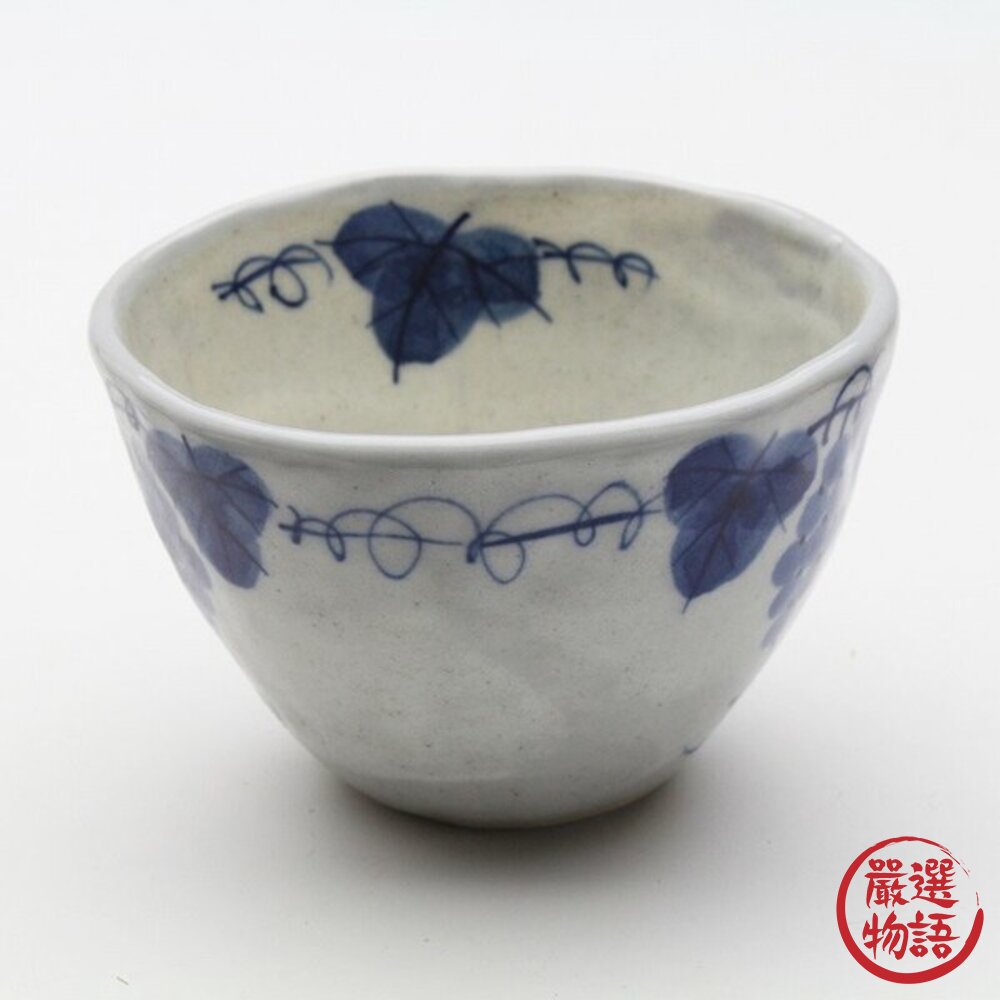商品名稱:日本瀨戶燒 粉引葡萄茶杯 陶瓷麵碗 湯碗 片口杯 茶杯 茶碗 豬口杯 藍白葡萄紋 日式餐具 食器 日本進口